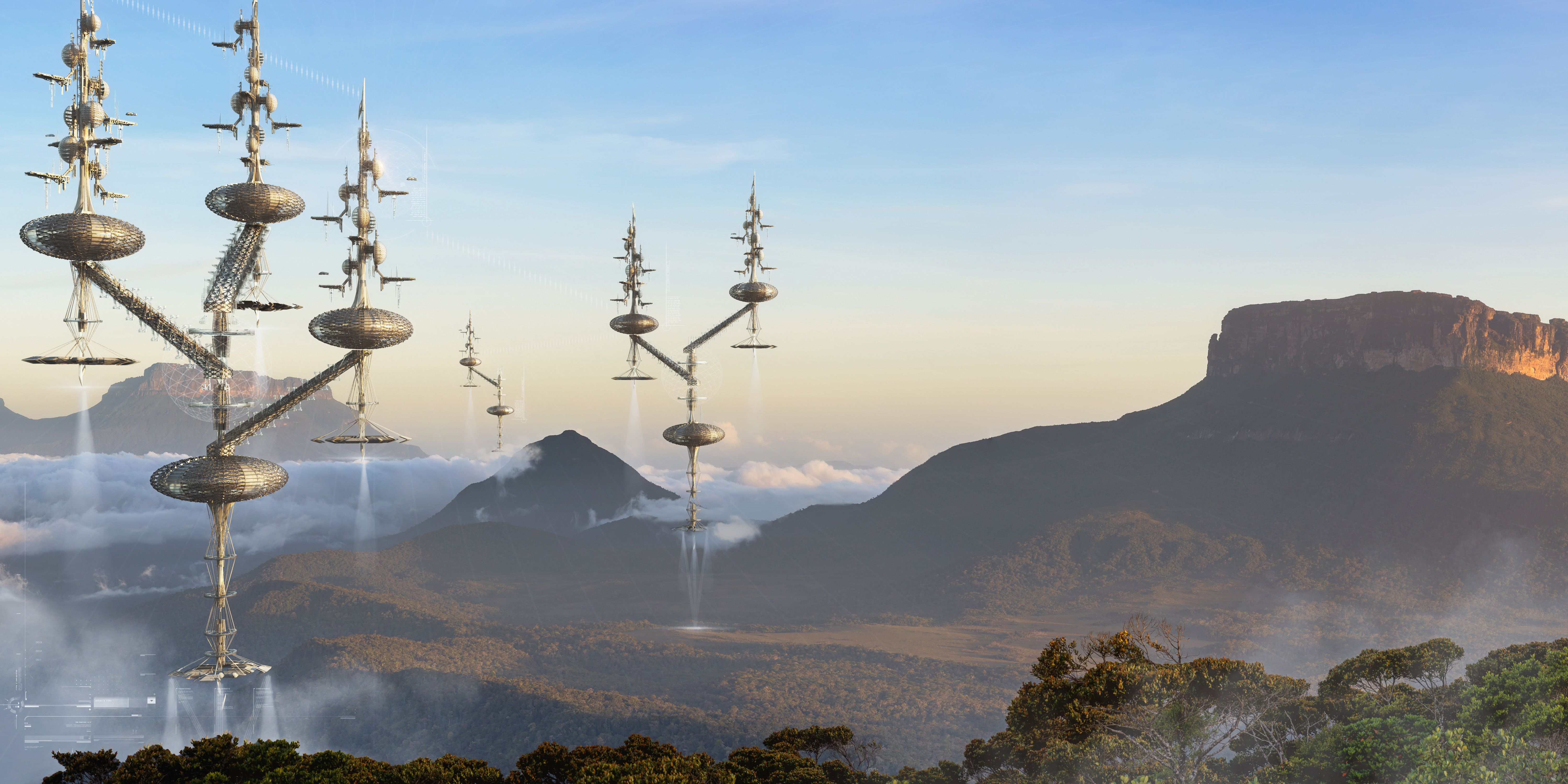 Canaima National Park – Venezuela, is one of the largest natural reserves on the planet and possess definitive characters that differentiate it from other natural reservoirs. It’s soil dates back to the Precambrian period, between 1.5 million to 2 billion years old; which makes it one of the most ancient rock formations in the world’s geochronology. These unique formations called “Tepuis” are a kind of table-top mountains with 90-degree vertical walls. Because of its ancient condition, high levels of electromagnetic fields can be found in the area. “Ka’ poy yepü” uses these forces to expand the use of electromagnetism as a form of direct energy. It prevents the disruption of the habitat by harboring said electromagnetism to keep the facility hovering over the valley.