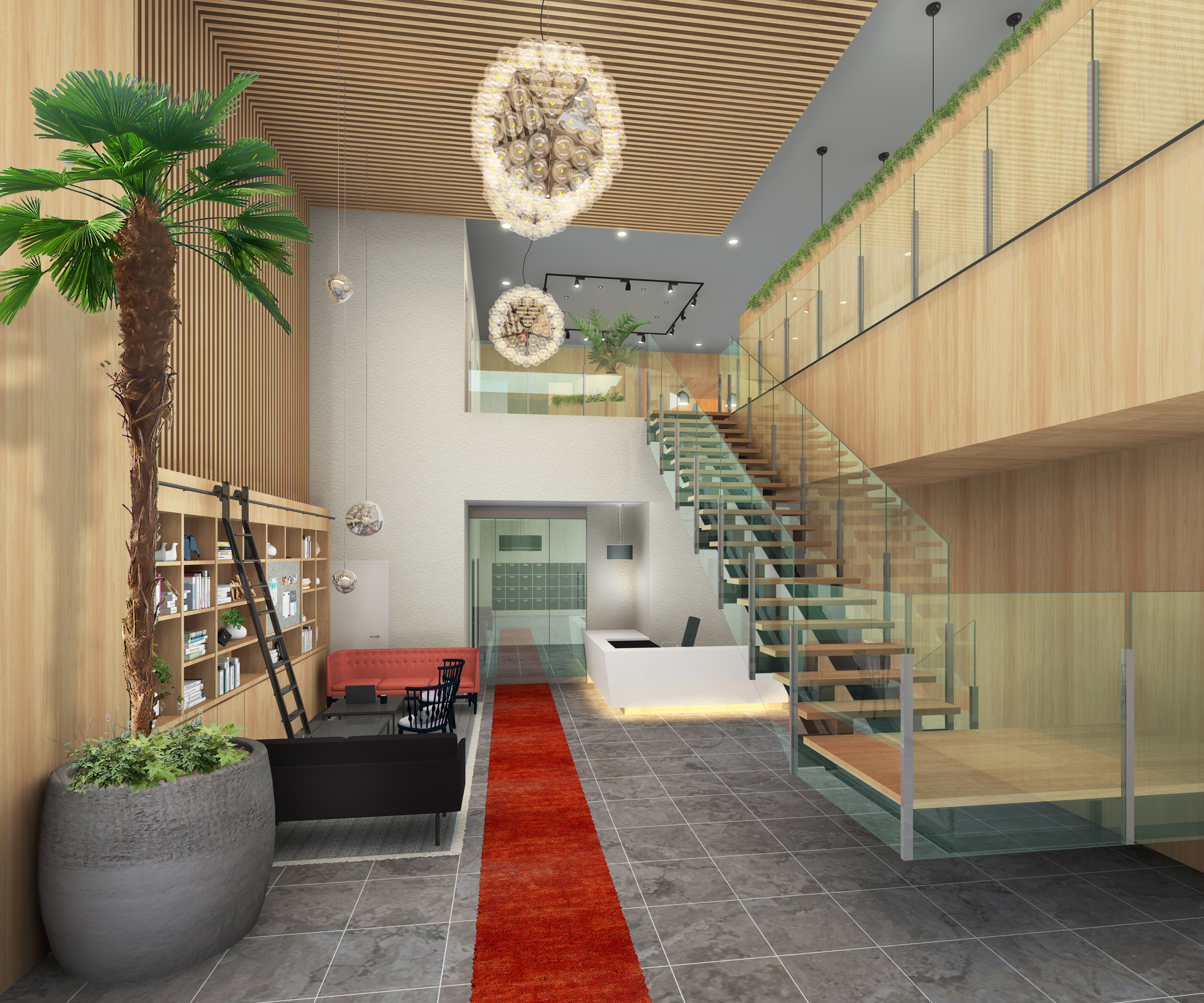 The interior lounge scene was provided by sophisticated lighting and material texture control.