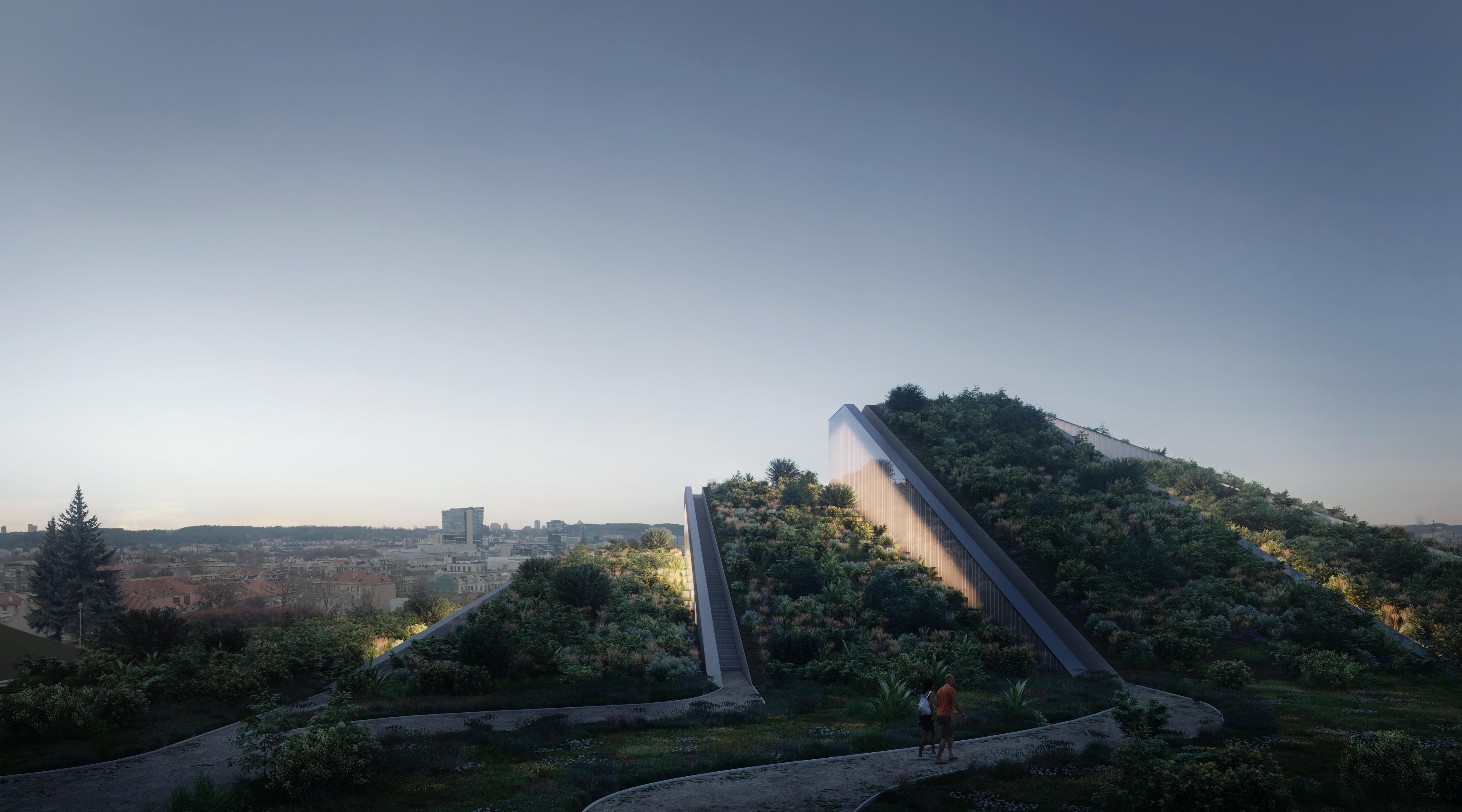 We were asked to help visualize the project’s dual perspective. Image “Over The Edge” was our solution to illustrate how the architectural concept managed to keep vivid the specific of the site location for Vilnius Community that had already unofficially marked the site as their “outdoor gathering place above the city” by reinterpreting the back of the building as an artificial walkable green hill that would preserve the view of the city and natural green paths design the community loved.