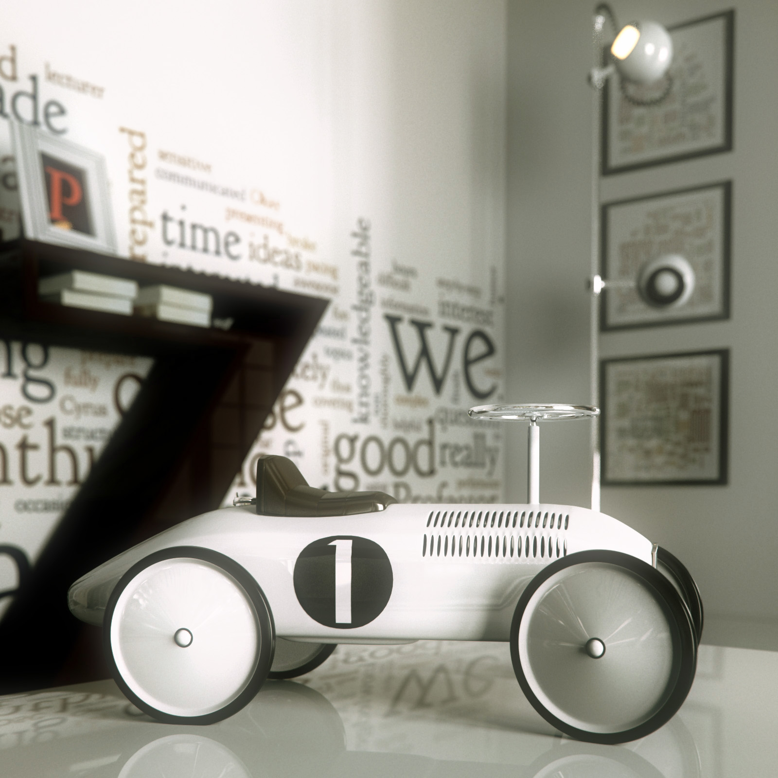 Rest room with the theme based on text and numbers.