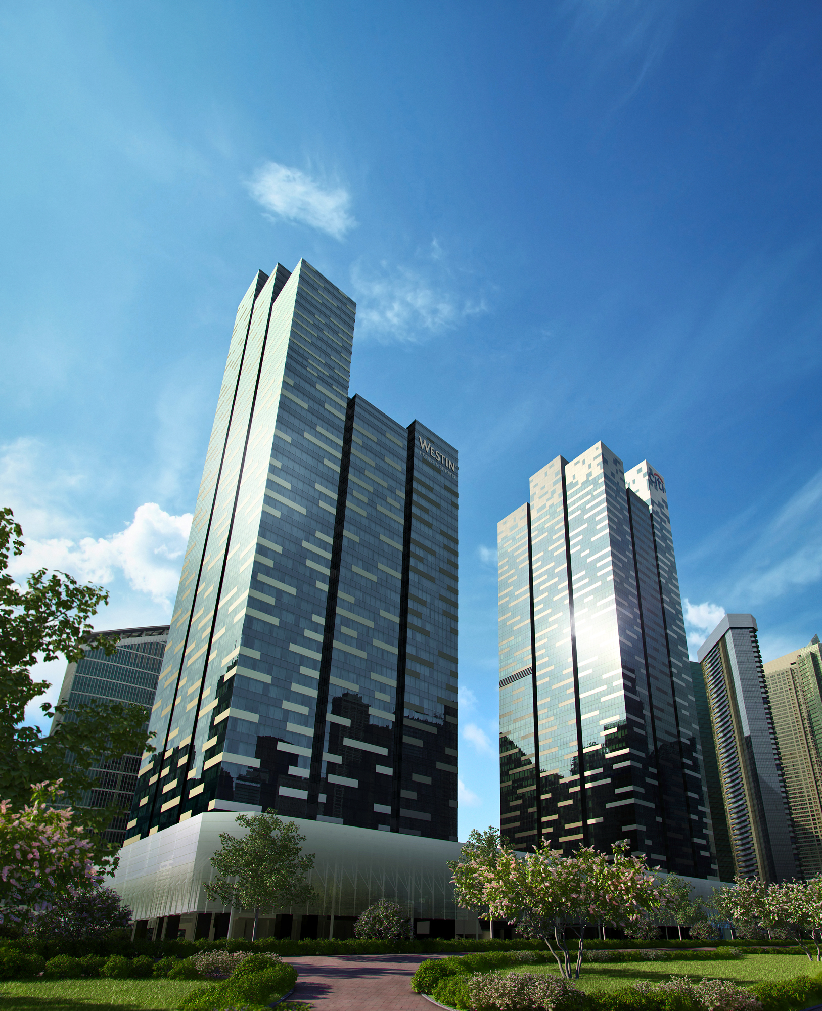 Visualization of Tower 2 + Photo-matching/montage of existing Tower 1 ("smaller" tower on right-side in image