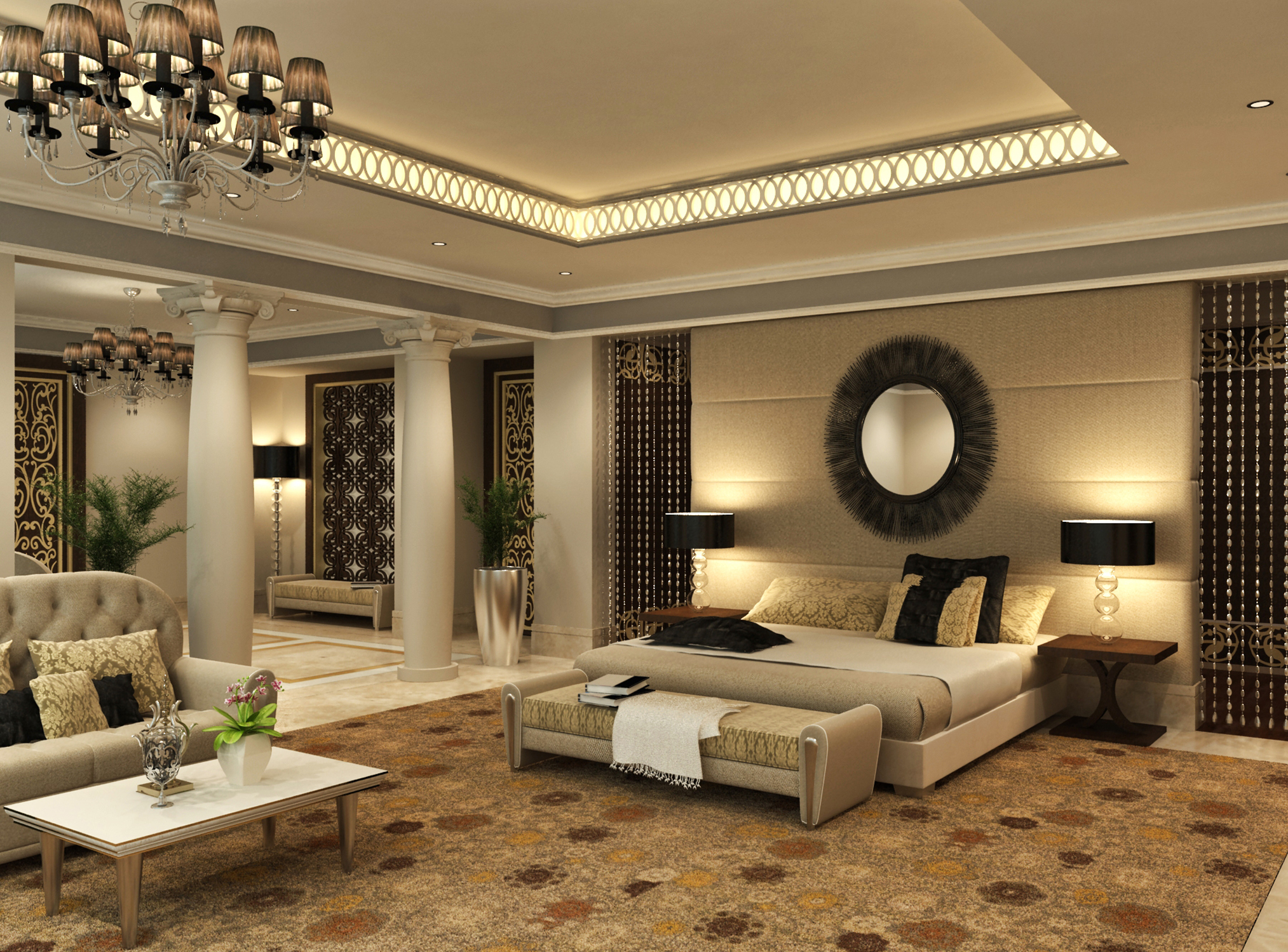 this is the master bed room with royal look for a residence in saudi arab.