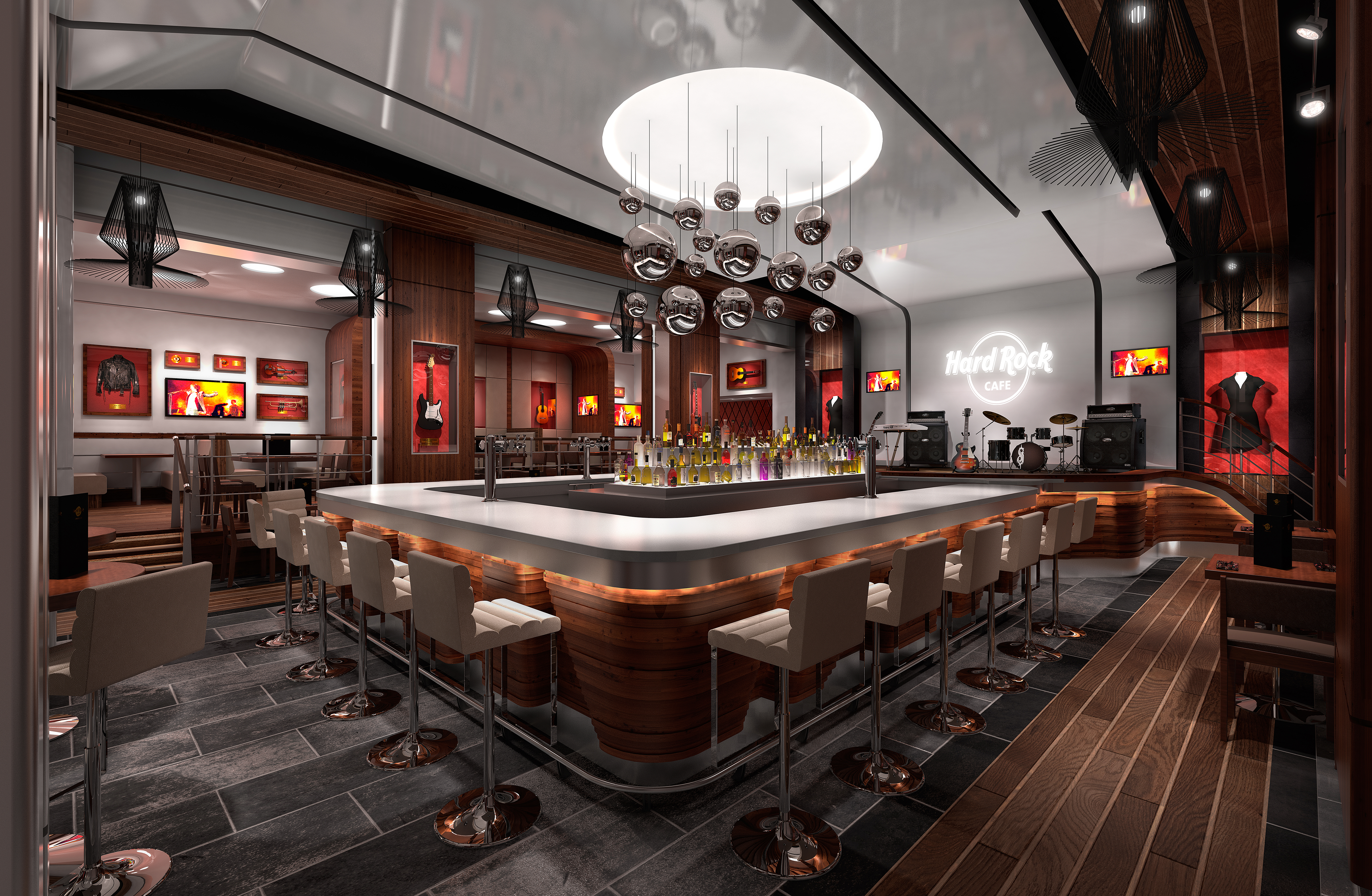 Image created to show new design of a Hard Rock Cafe bar and store in Barcelona, Spain.