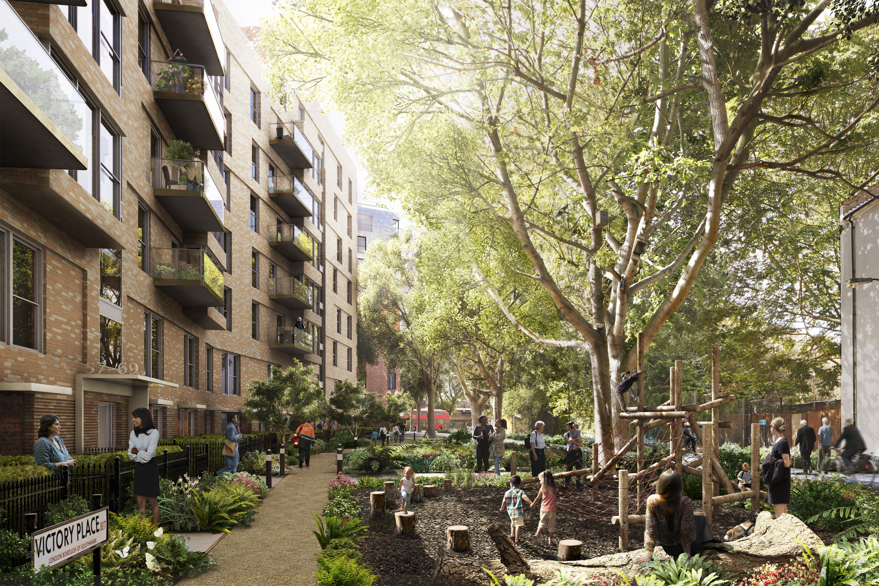 Trafalgar Place offers 235 studio, one, two and three bedroom homes, each designed with its own private outdoor space. This is the first phase of the Elephant and Castle regeneration in London.