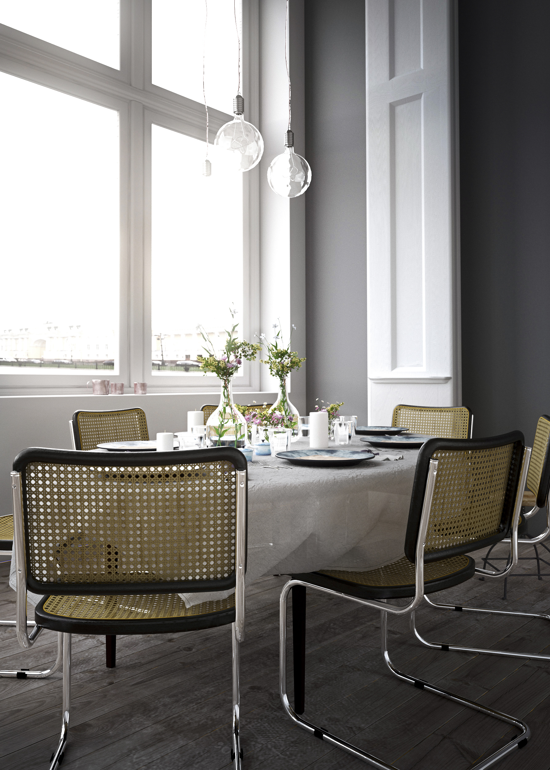 Made with 3ds Max, Vray, Photoshop. Inspired by scandinavian interior photography. Each object is custom made.