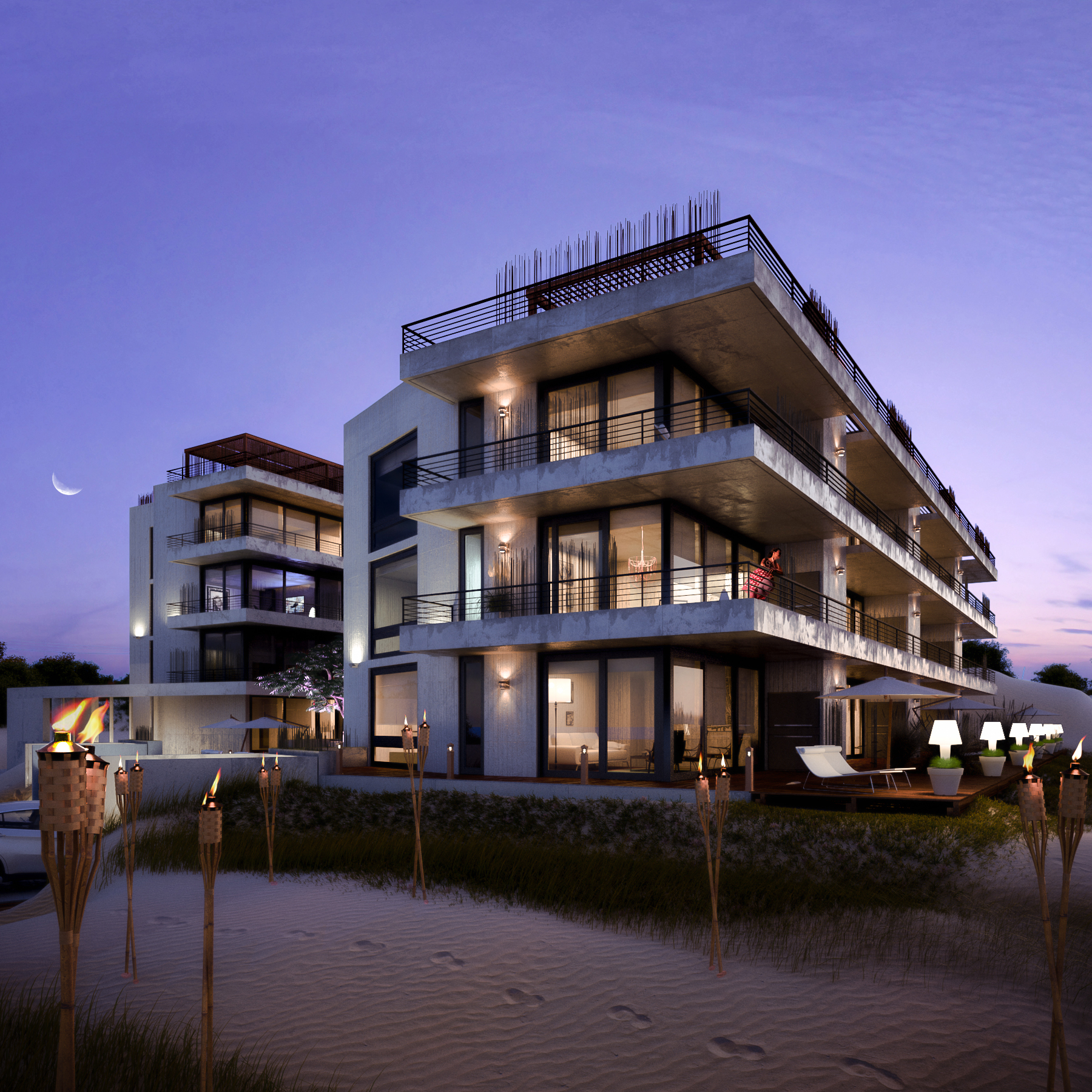 In this image we tried a different situation with a twilight illumination from the original daylight image and thought some luminaries to set an artificial lighting