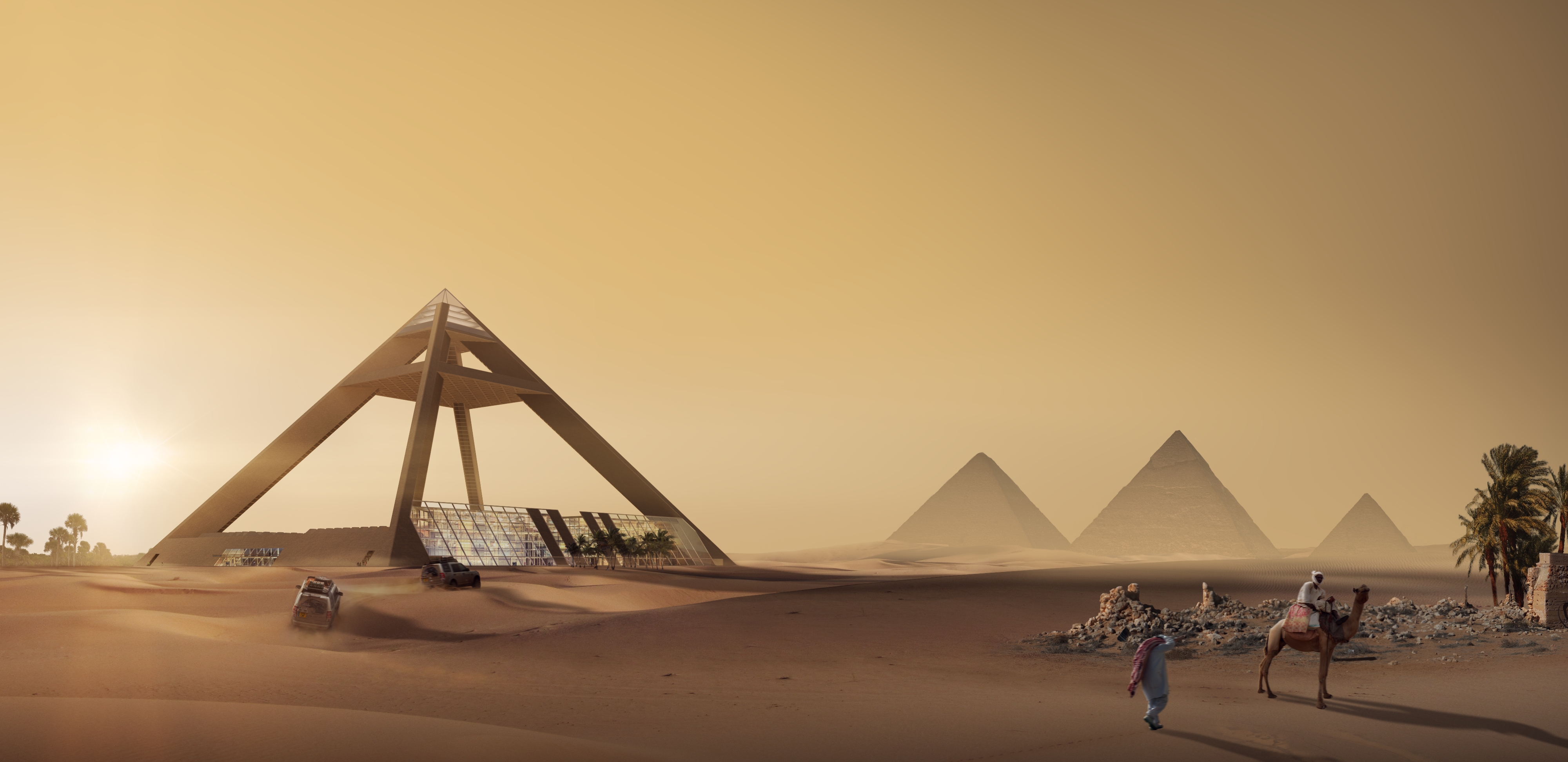 Museum in the shape of it's siblings, pyramids in Ghiza, is a nice interpretation of the past transforming to the future.
