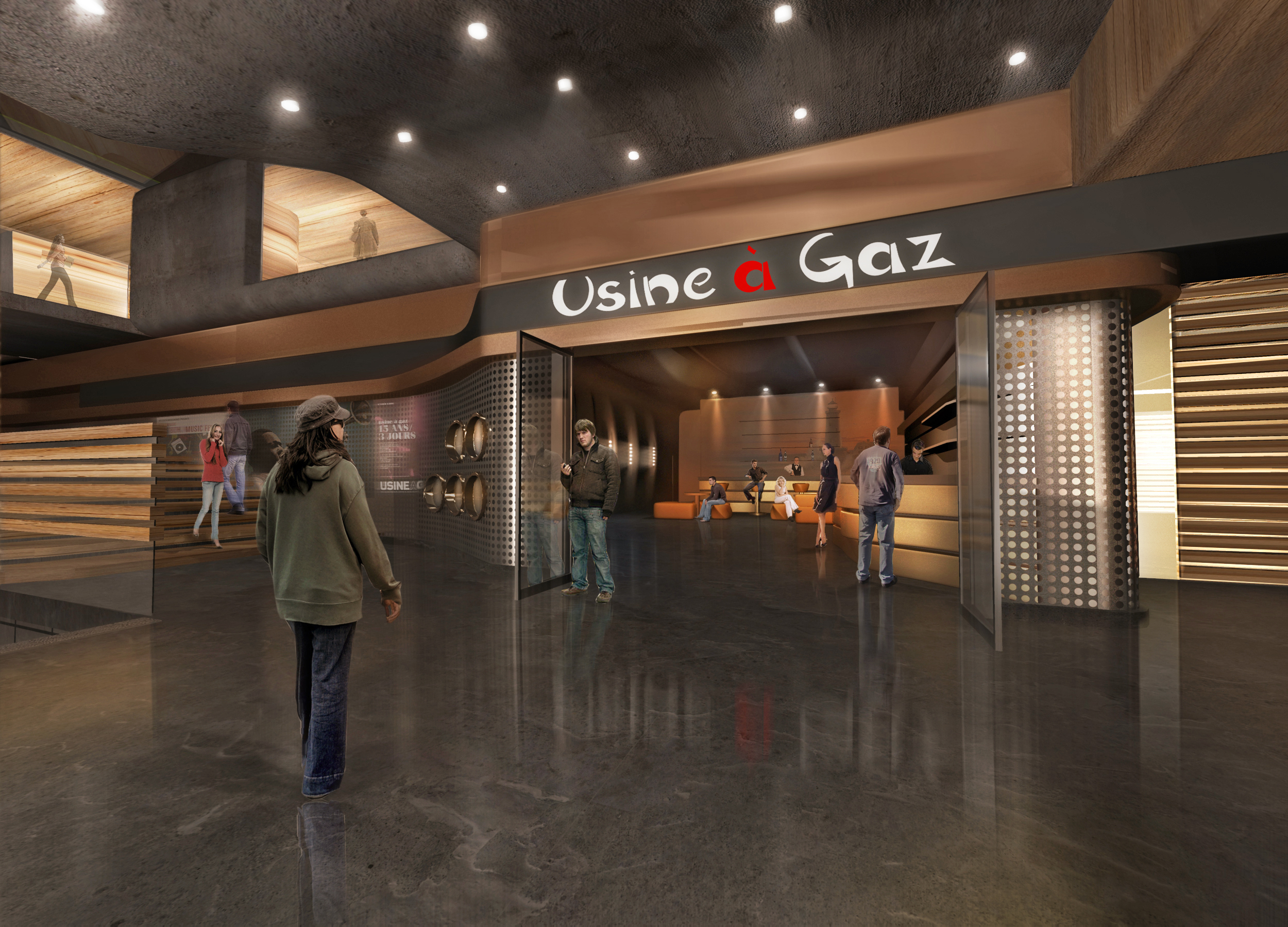 Renderings for a mixed use artistic complex near Usine a Gaz, known for its cultural festivals. To keep the images harmonious, we focused on balancing the different colors and forms of the three main materials used on the building: concrete, wood, and metal. Also we were challenged to vividly depict the unclear boundary between interior and exterior. The present imagery was completed in January 2013.