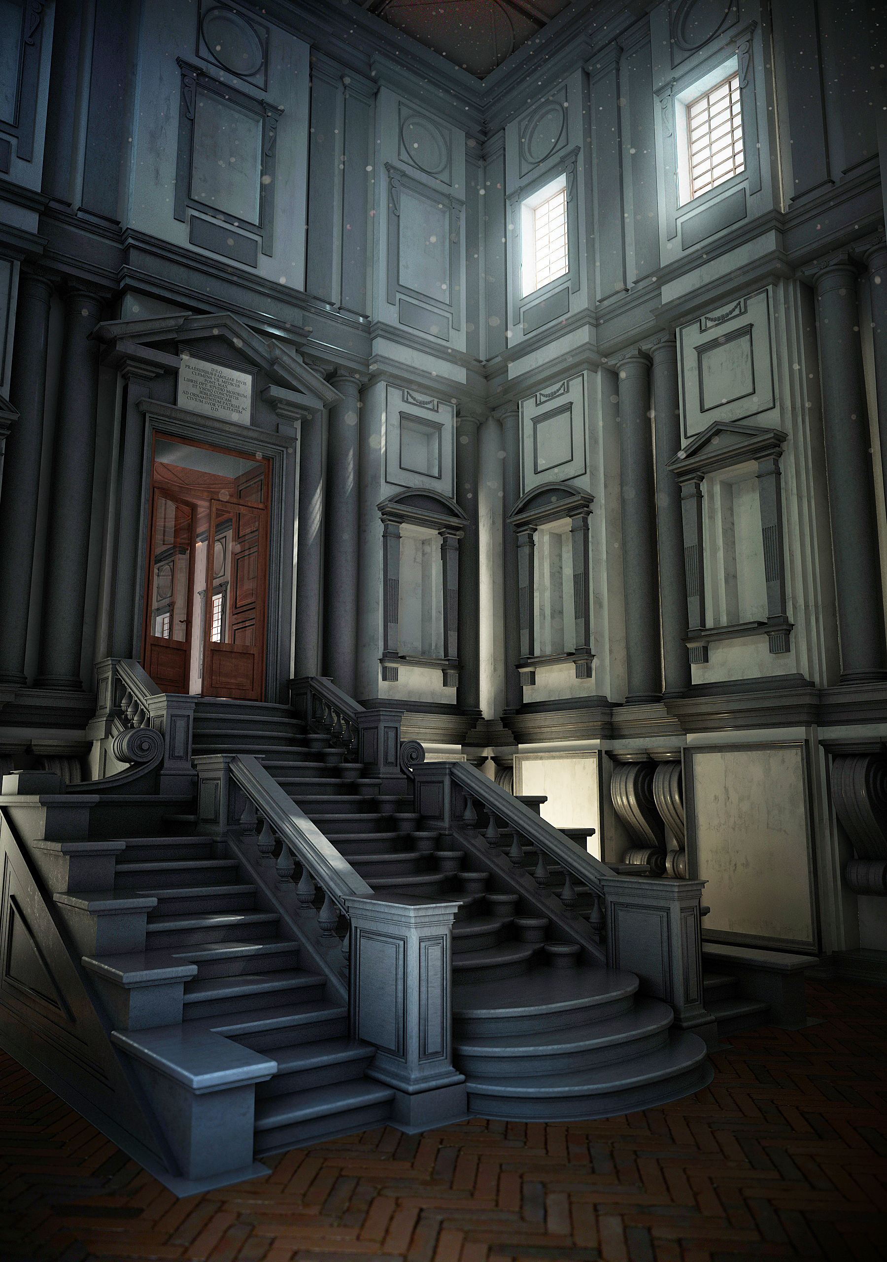 Biblioteca Laurenziana vestibule, Michelangelo Buonarotti.