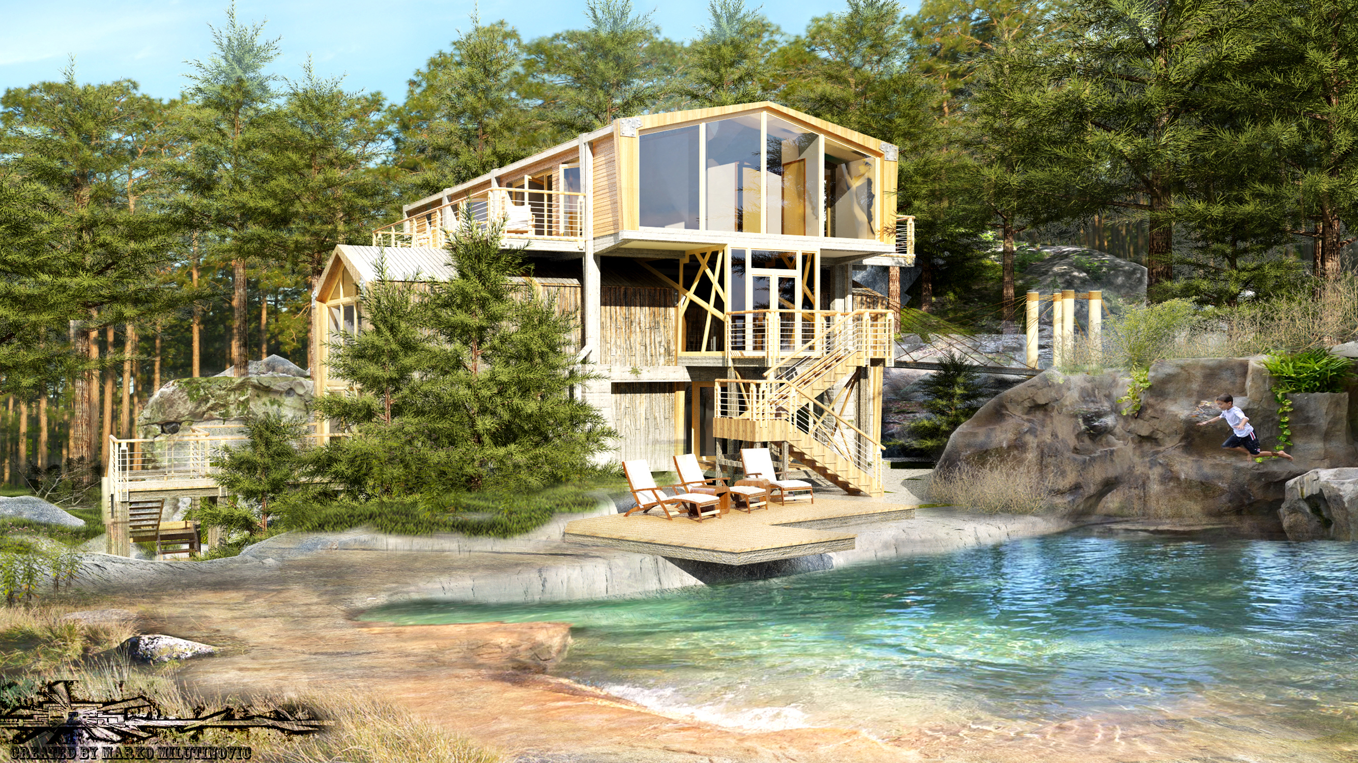 Forest house with natural swimming pool