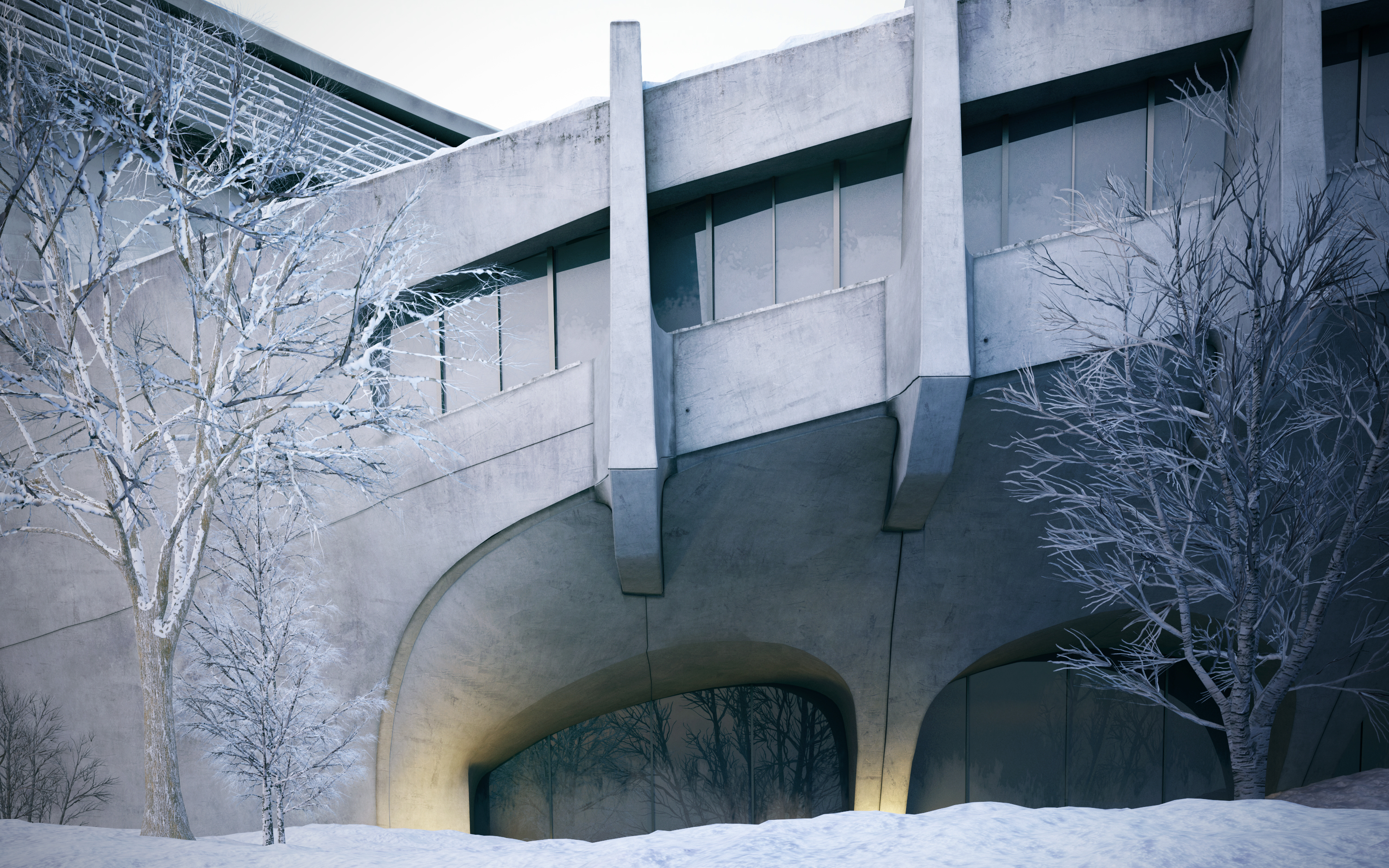 Winter scene personal project using the Yoyogi national stadium by Kenzo Tange.
