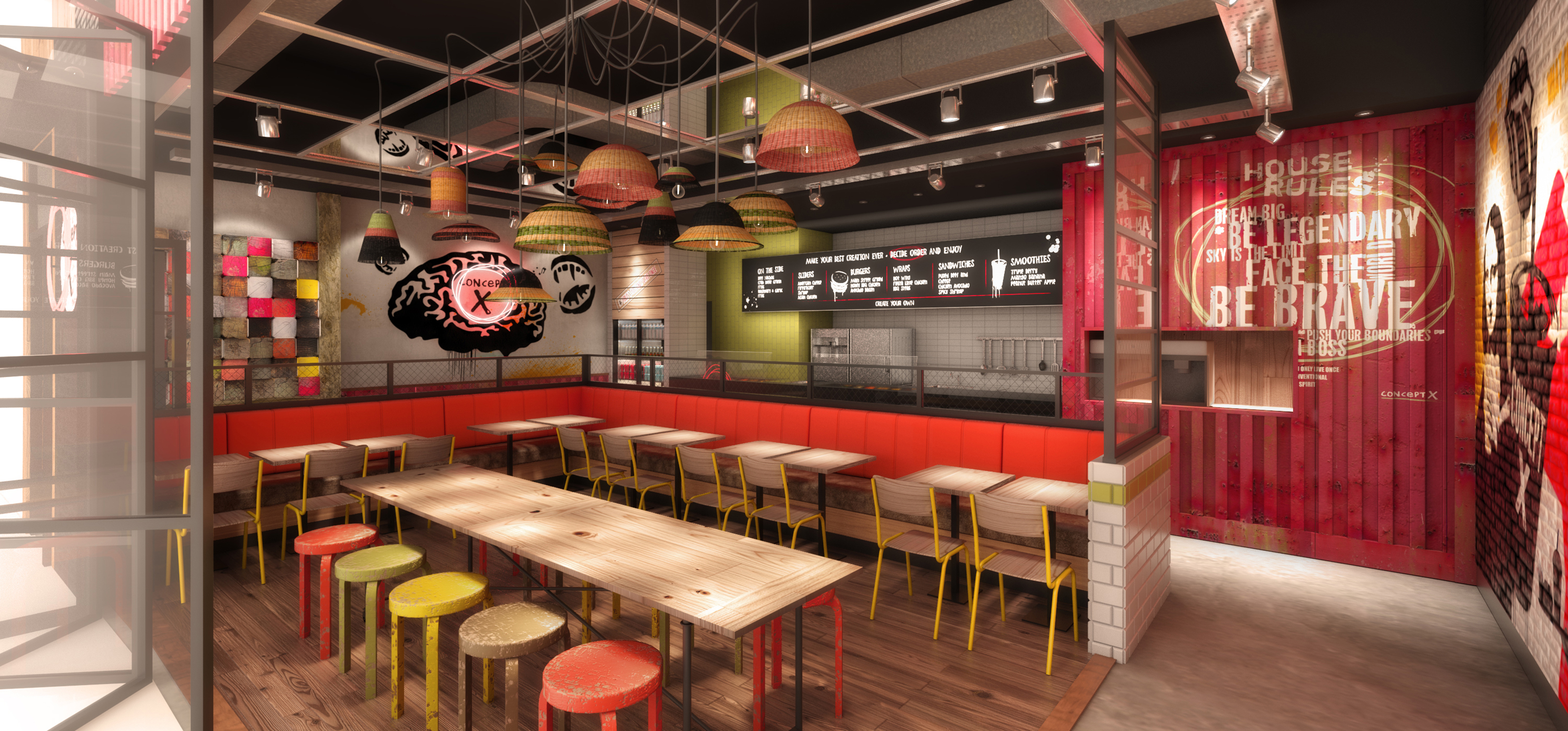 Its a fast food restaurant interior desing.