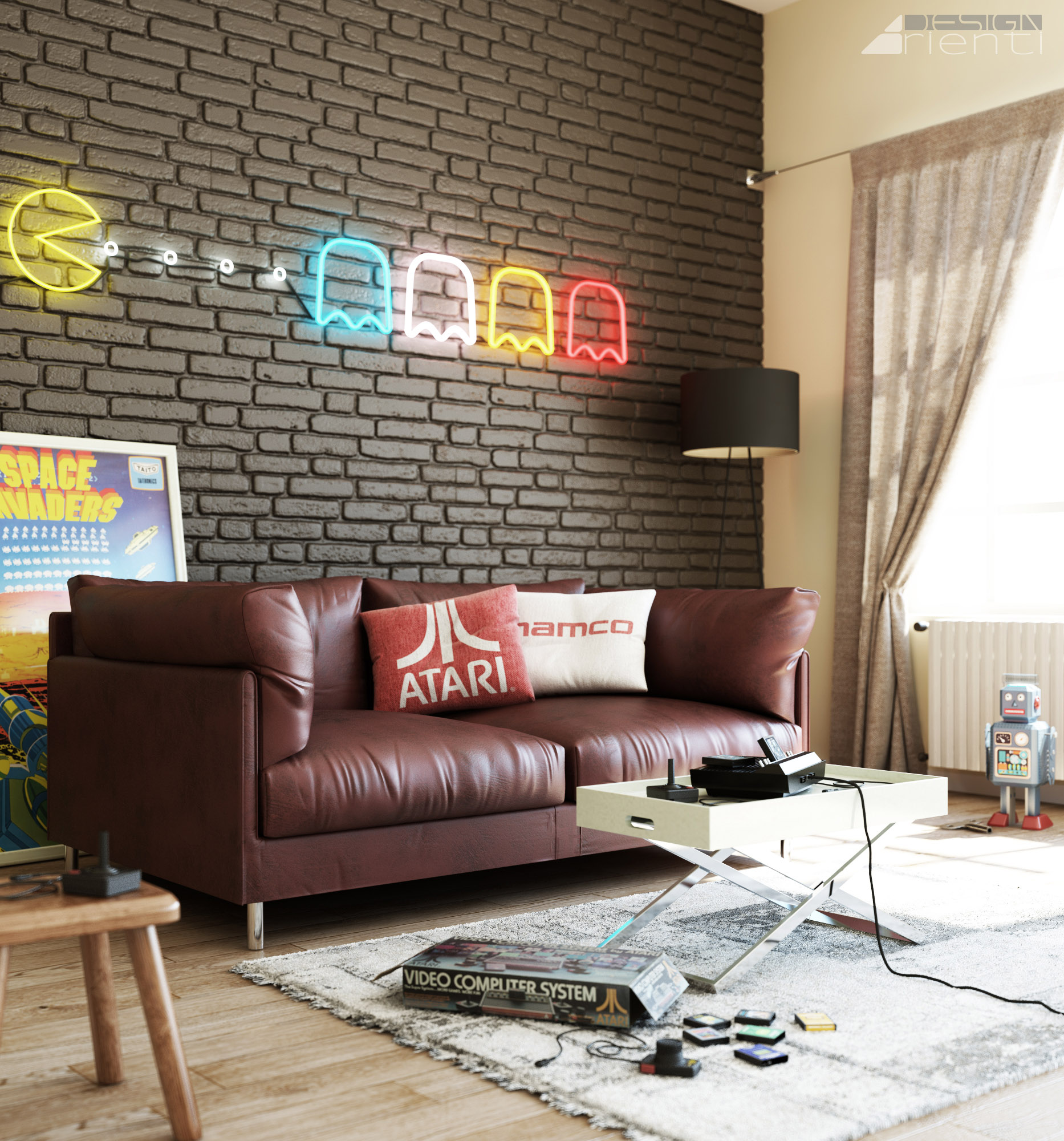 Interior design created to evocate old style nerds sofa
