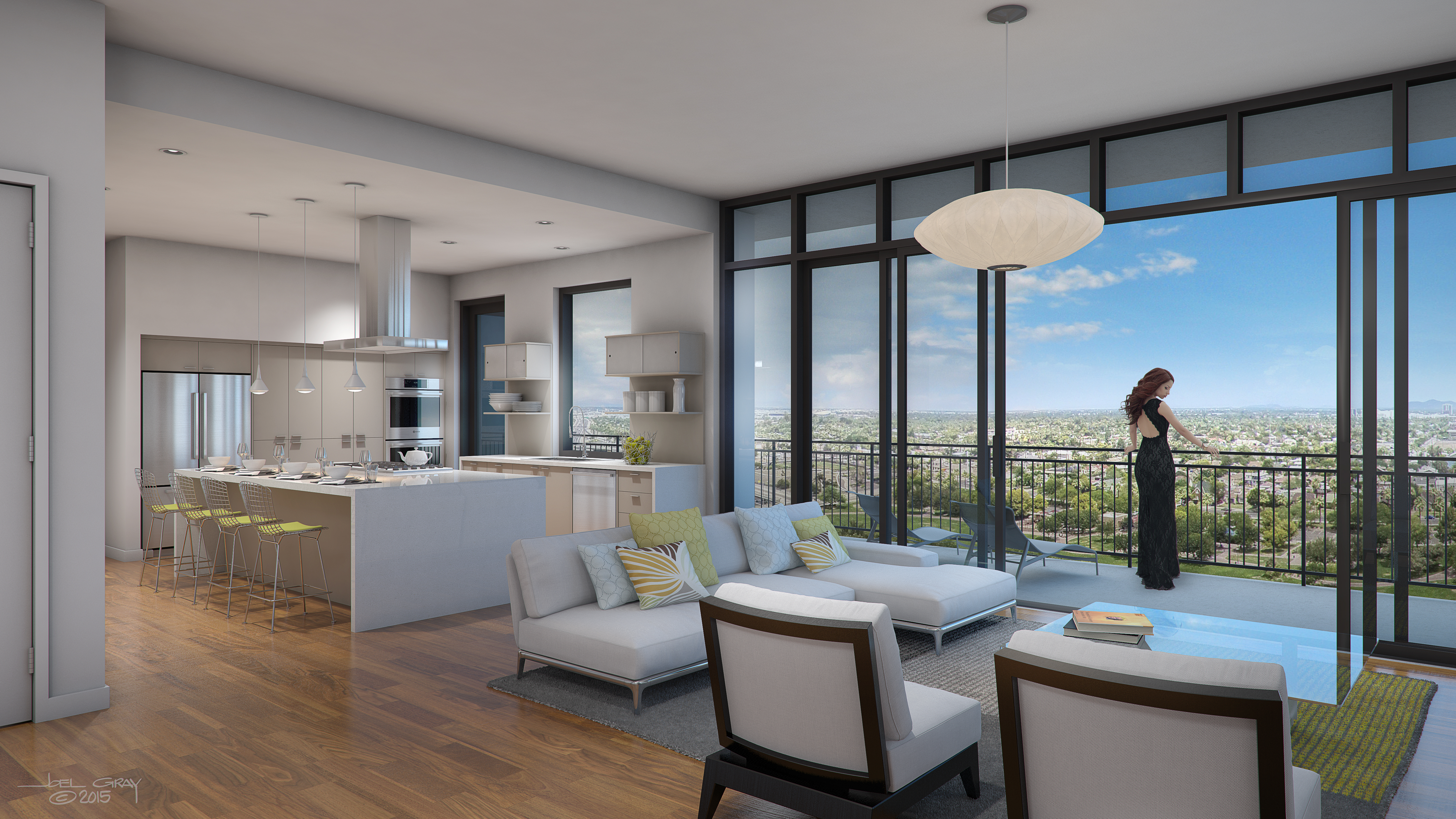 Interior Rendering of a typical Portland on the Park loft space, located in Phoenix, Arizona.