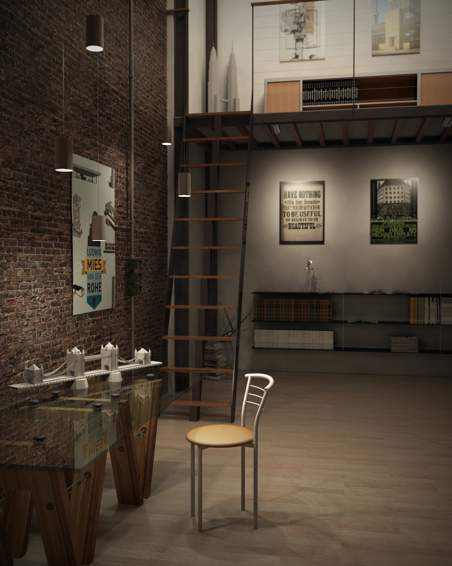 Alcuni modelli dell'immagine sono stati scaricati da siti free (Tavolo, sedia, modelli architettonici, libri, mobile, PSJS) di mio in questi modelli ci son le texture che ho variato a piacere.