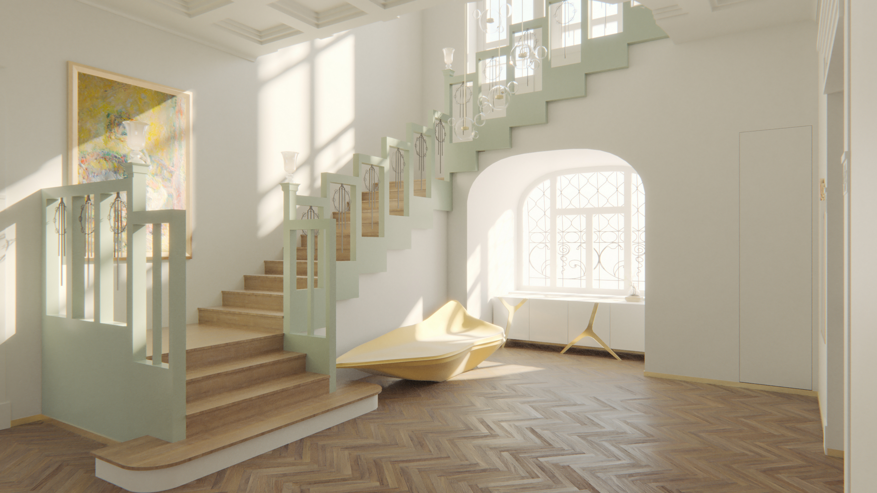 Created for a private client as a part of her masters degree in architecture. All spaces were planned by Uršula Or. The image was created by me, Nejc Škufca.