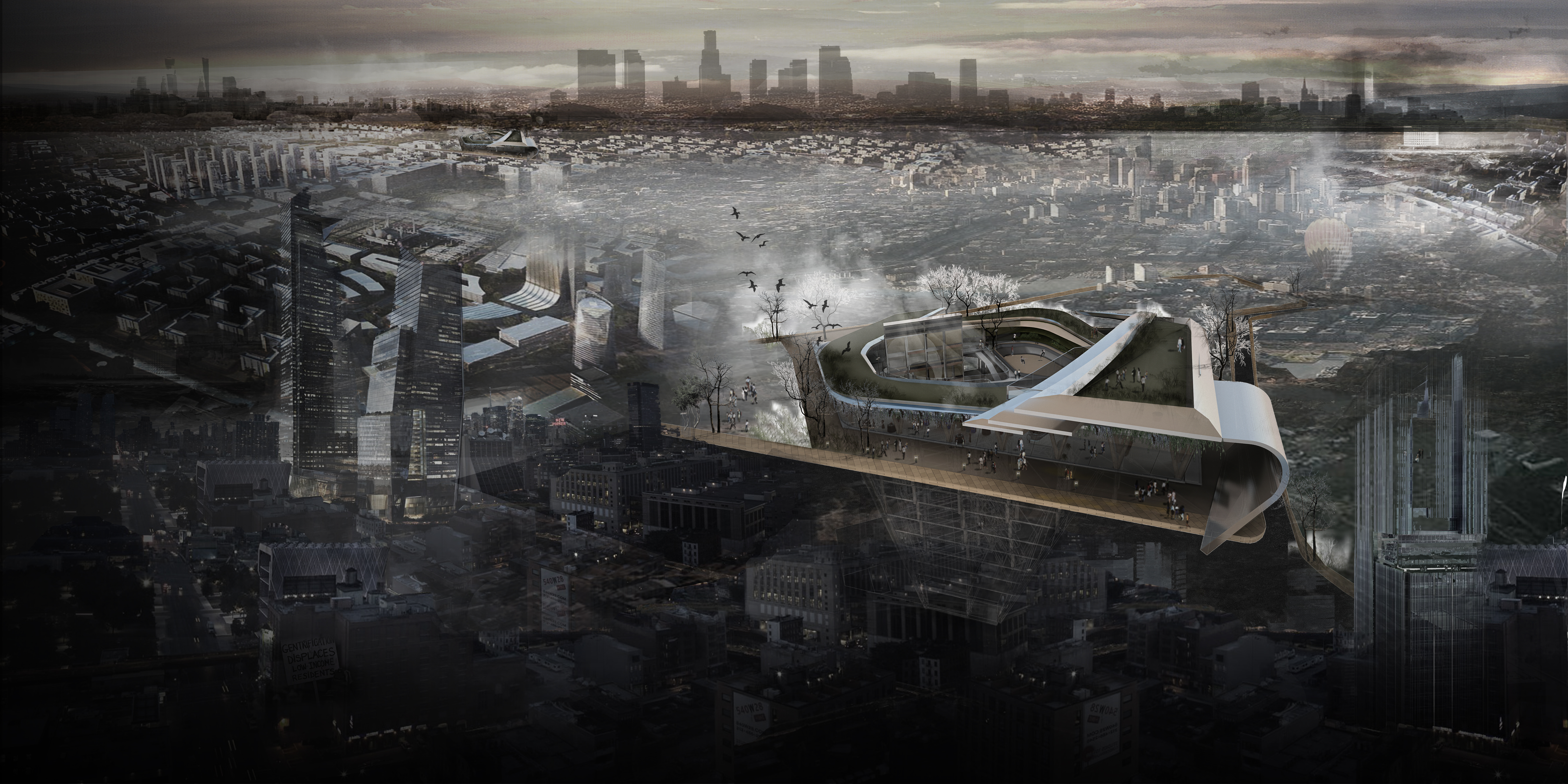 The battle between the poor and middle-income competitors requires mediation: an architecture intervention that can act as a tool to compromise the complex problem between those actors. As land becomes limited in the city centre, while the development becomes unavoidable, open spaces are taken for the sake of commercial purpose; bringing city as cramped and crowded with more compact and dense fabric. The void in the city is fundamental to bond relationship between people, where ground shall perform as the platform to be served as the public space if less accommodated, communication and network are cut, leaving the inhabitant become more individualistic and less participation in the city.
