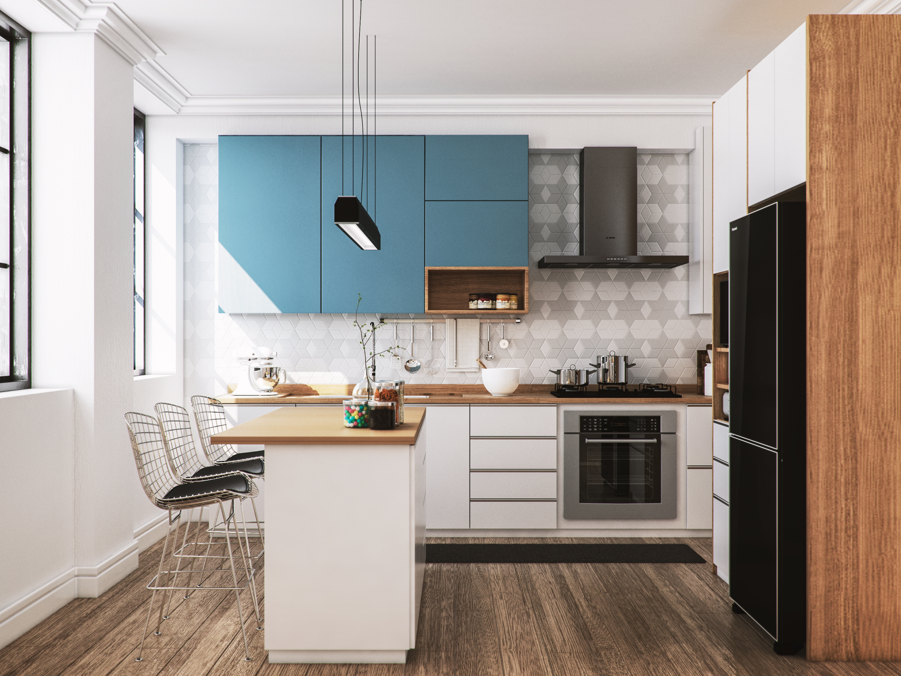 This is the kitchen area of a apartment I did just to test and solidify some new techniques on rendering in Vray.