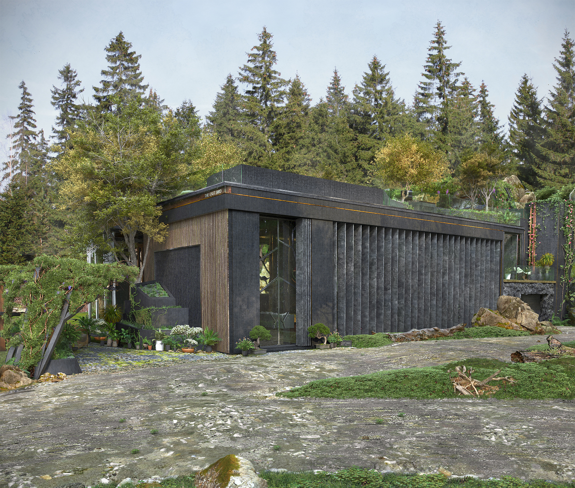 The Image shows the view from the approach road towards the villa. The project is about a villa exclusively for a couple amidst the forest. It is about the transparency in a relationship between a couple that I tried to bring into this living space I designed; at the same time personal spaces as individuals!