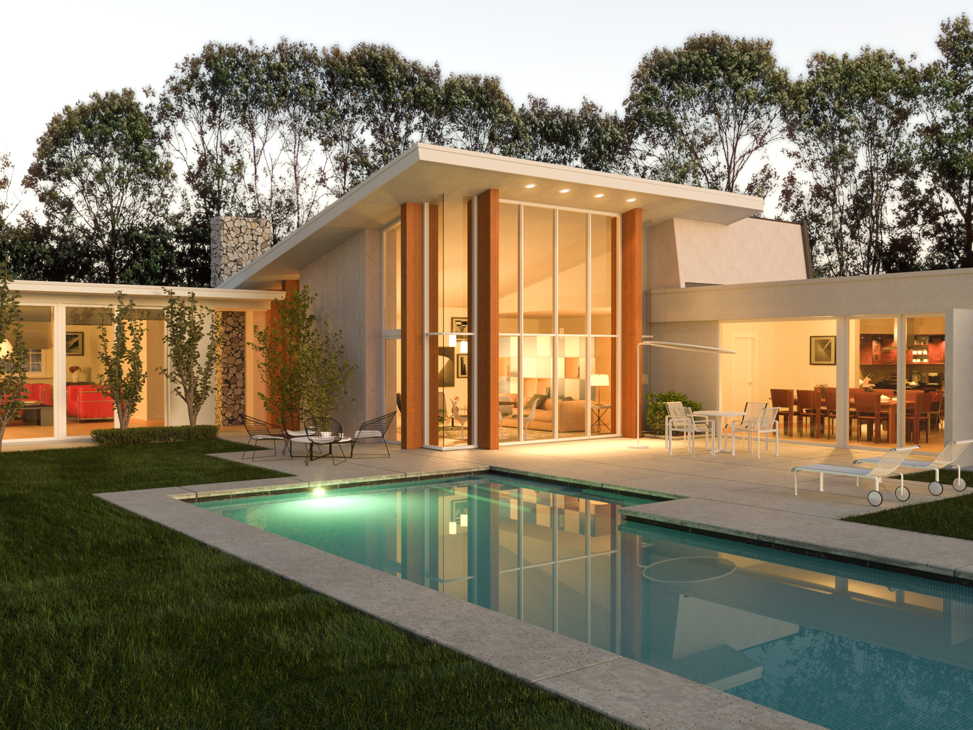 Modern architecture with high ceilings, spacious living and dining areas. 3ds max,zbrush,vray,ps.
