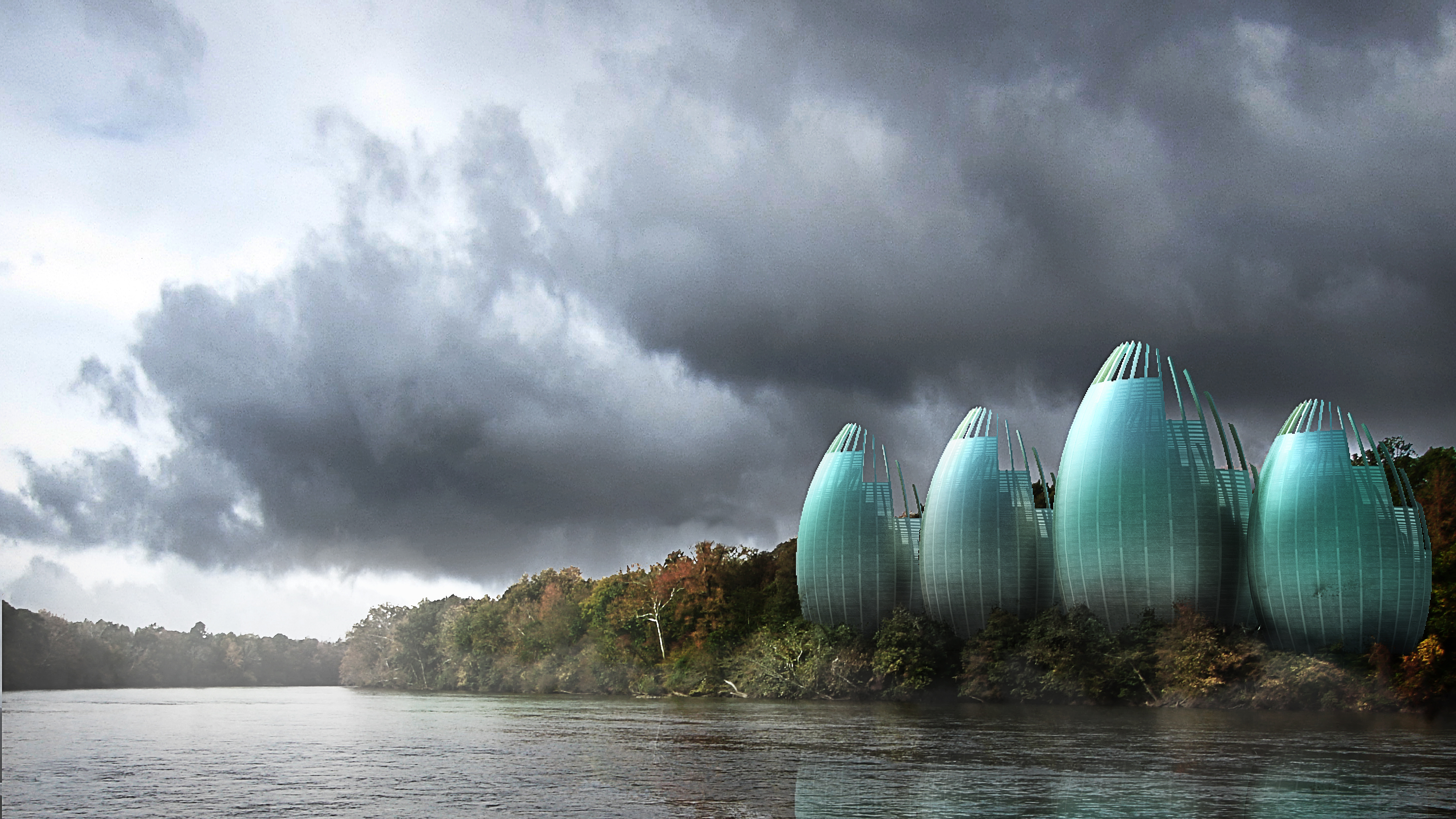 This visual uses Renzo Piano's Jean-Marie Tjibaou Cultural Centre as a bases for the Photoshop post production visual.