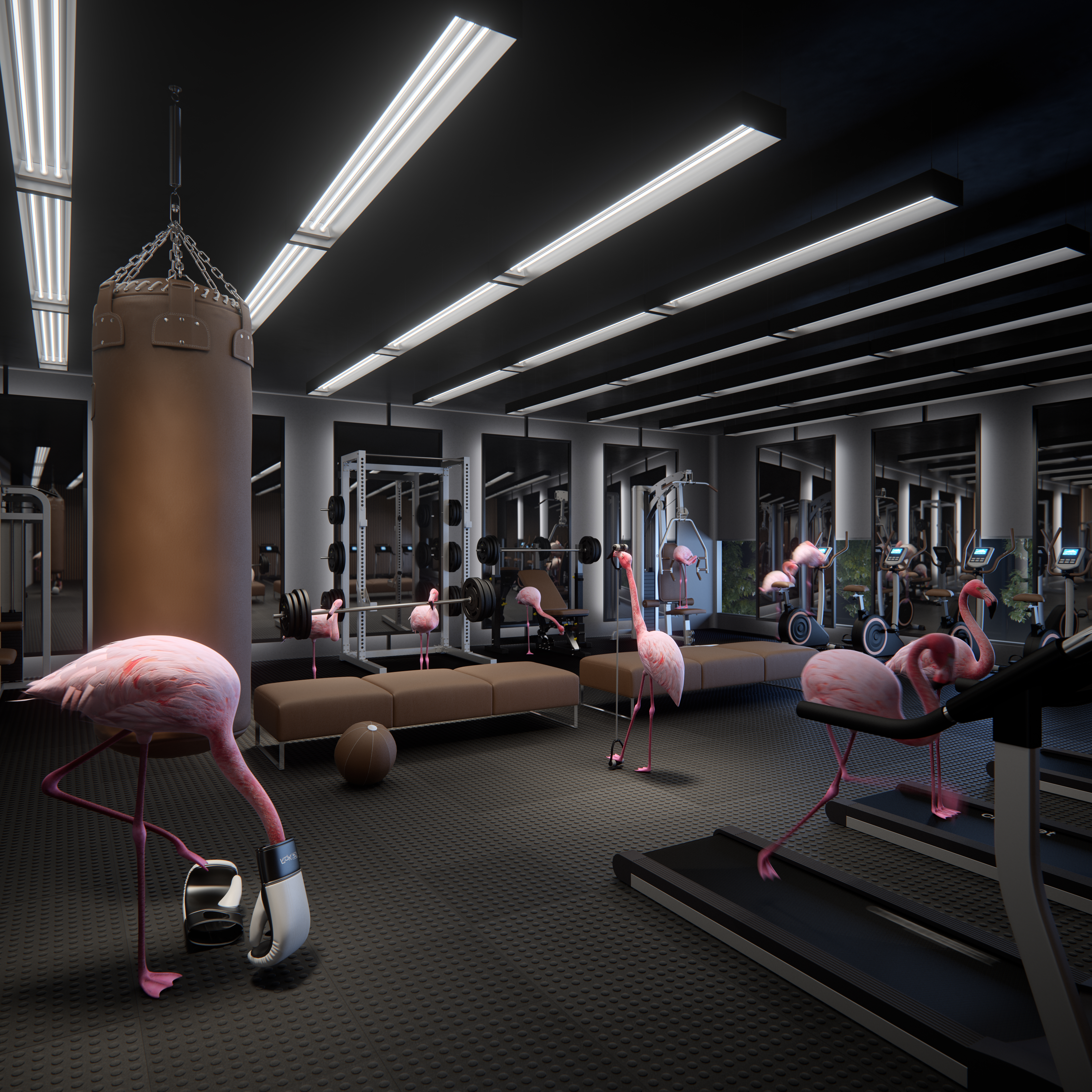Part of our 'Wonderland' campaign, for Sydney's Central Park Development. This is the gym, were the Red Queens flamingos, get buff for their croquet tournaments.