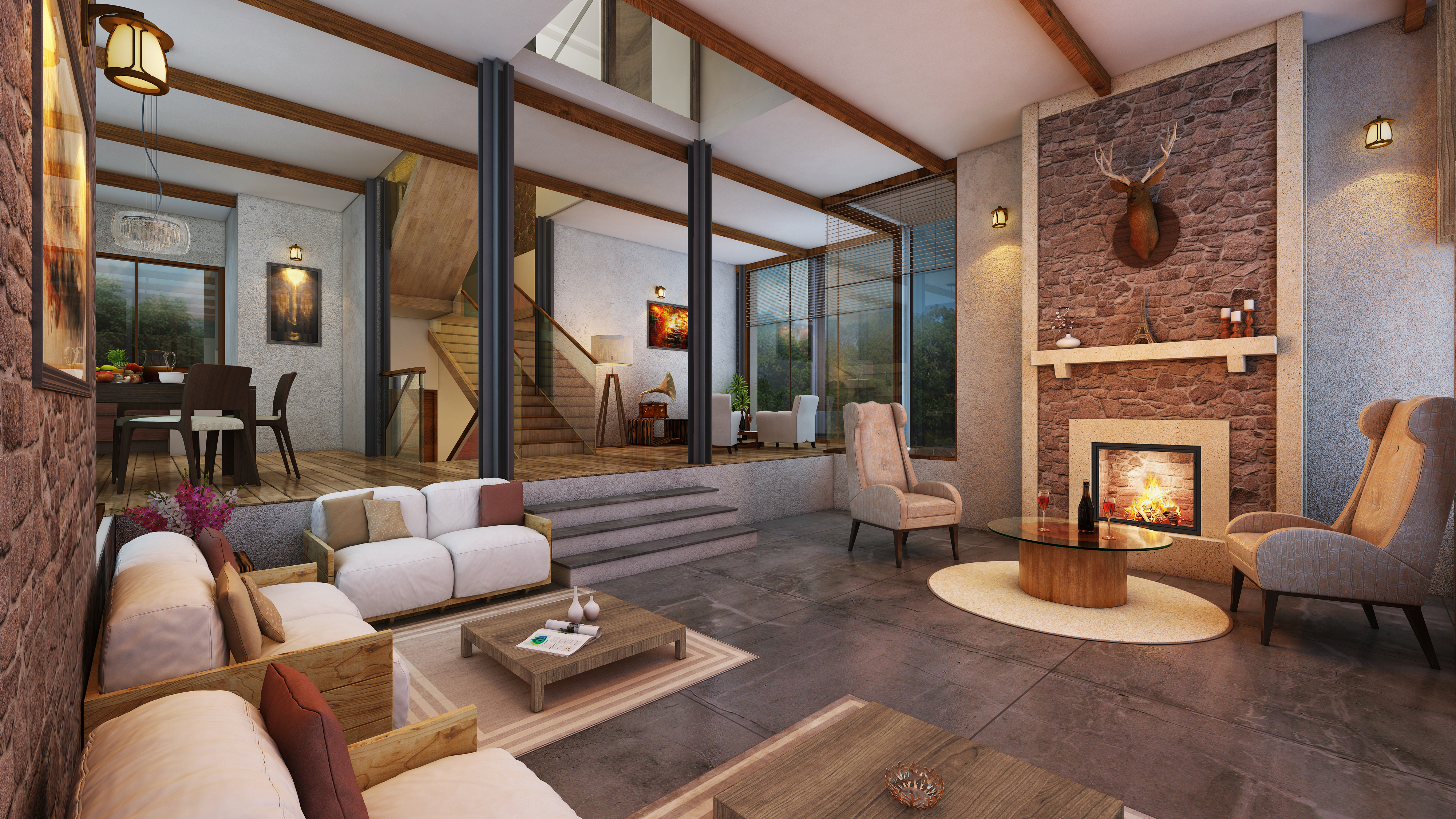 This is a Living/Dining space created for Mantri Landmarks project Glen Royale in Panchgani, India