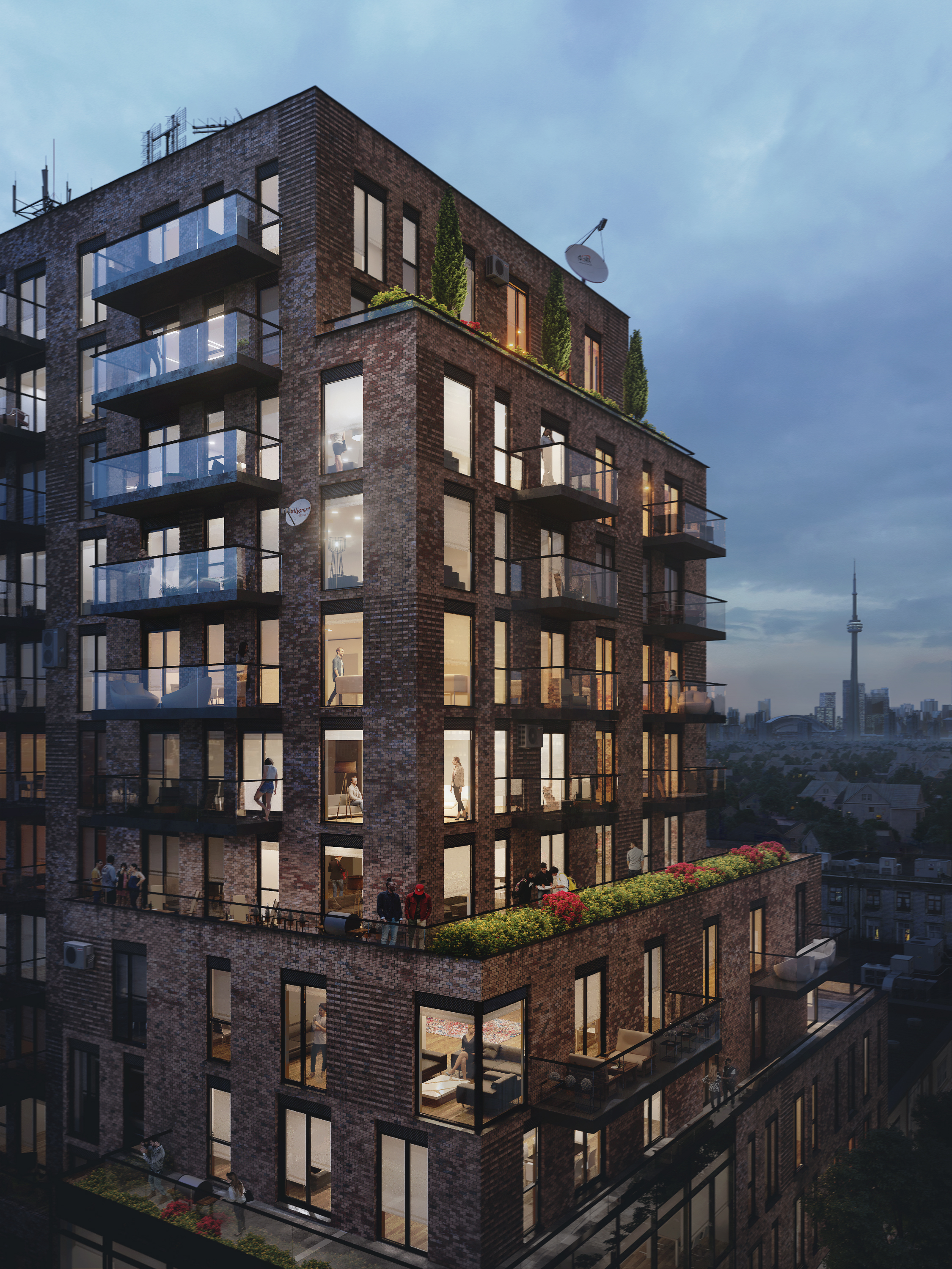 Apart from the exteriors, we partially refined interiors, terraces, and balconies. A lot of time was devoted to the look of materials, in particular to the bricks. During the visualization process, we tried out several options of saturation, hue and color to achieve the result that fully complies with the client’s needs.