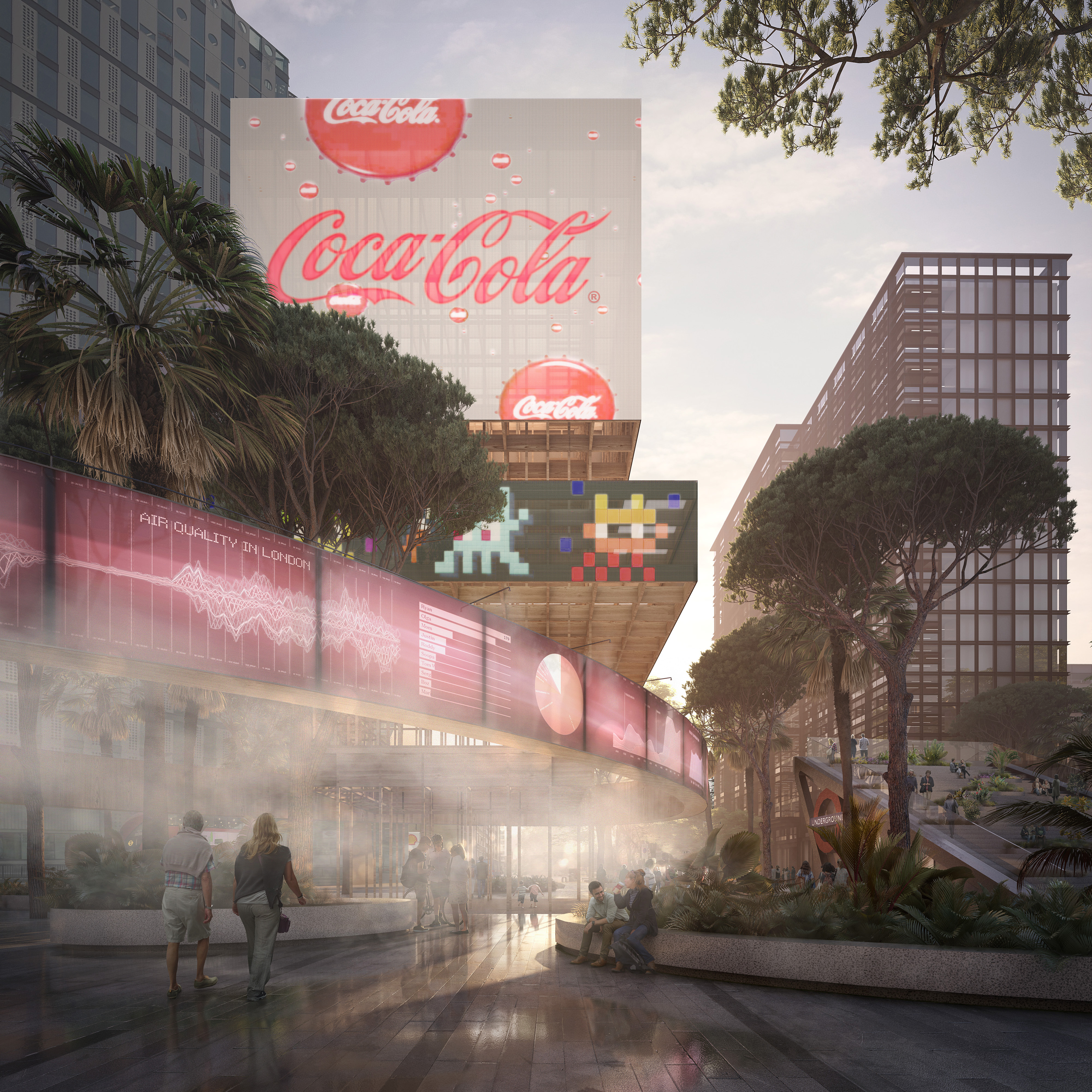 A future city - where sub tropical plants grown amid the misty streets.