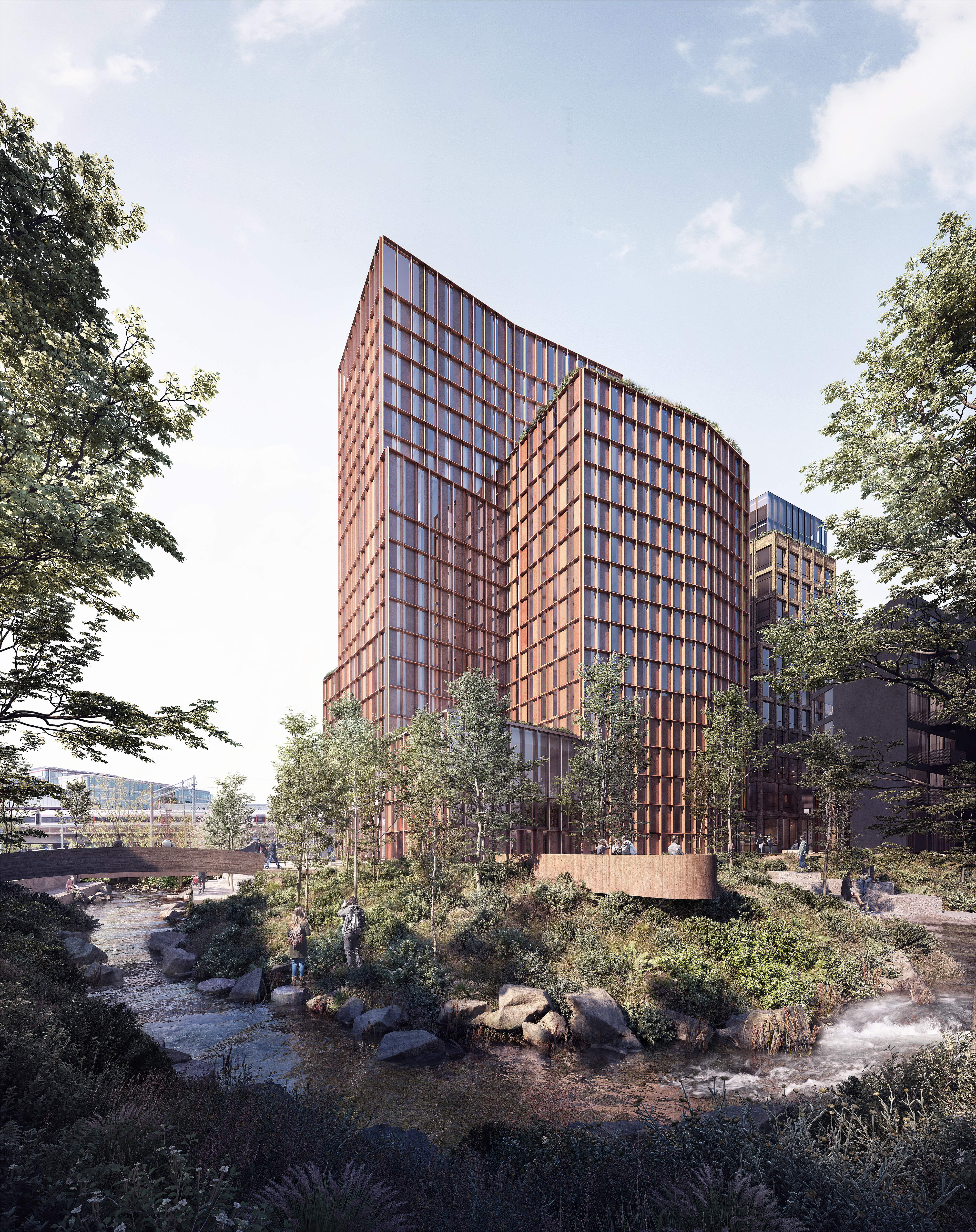 A new project in Norway, showing the meandering stream and Norwegian Pines.
