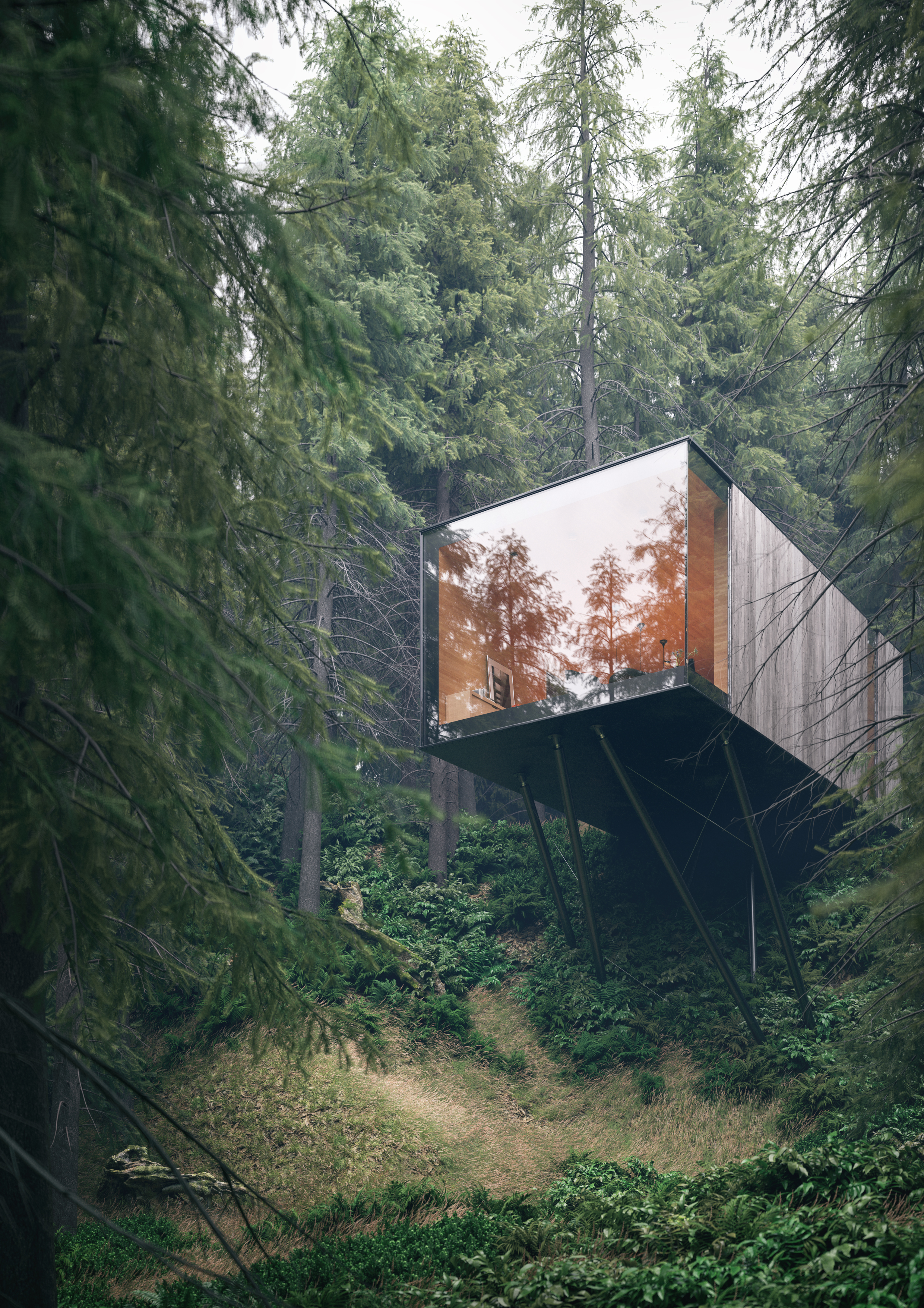 Hotel room from a project for a unusual hotel and spa resort in Germany. Everything is done in 3D.