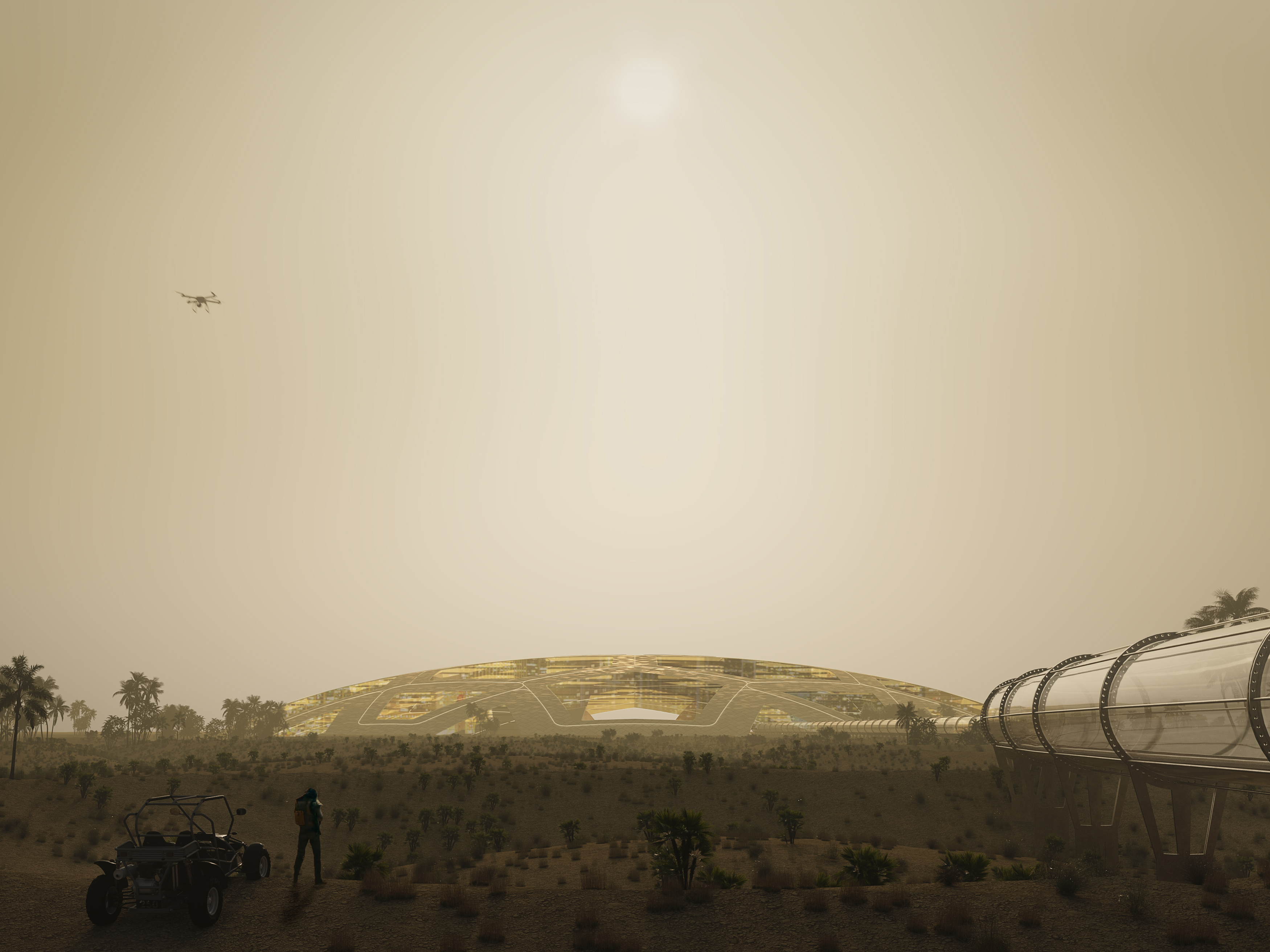 Distopial Future with Hyperloop transportation, yes it is a comissioned work.